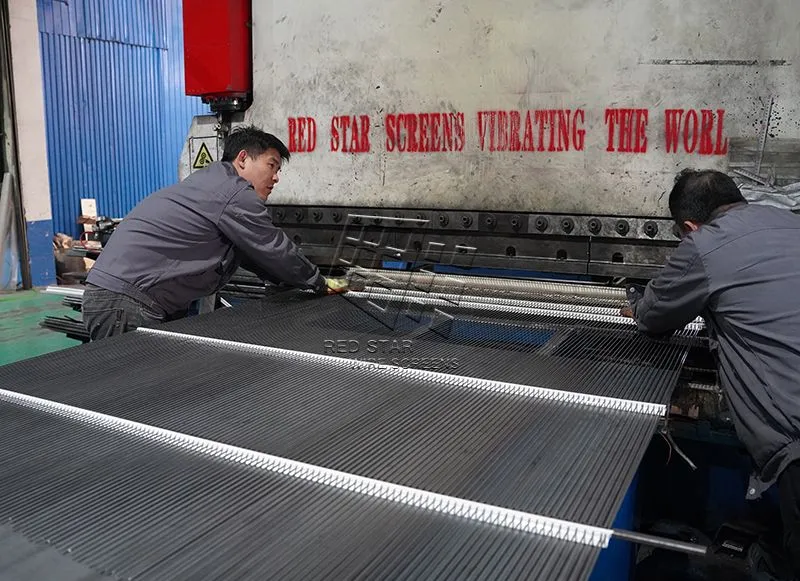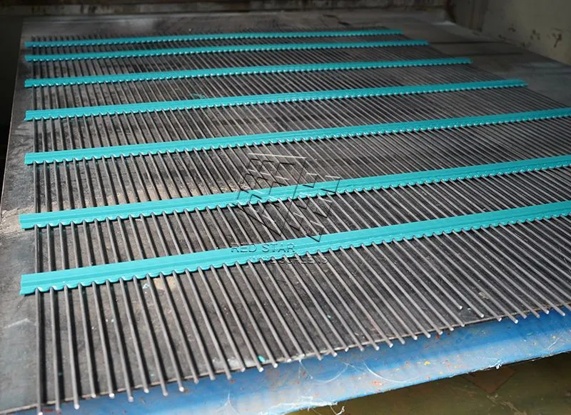 ② These screens use parallel high-tensile steel wires supported by polyurethane or steel cross members, allowing the wires to vibrate independently to release fines and prevent material from getting stuck.